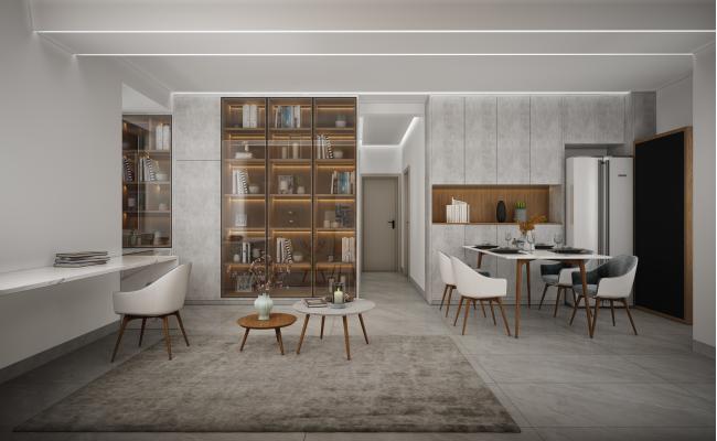 業主是新婚夫婦,夫妻兩人都喜歡閱讀,全屋無主燈設計注重整體色塊的區分以及軟裝的搭配。 空間主要以木色跟暖色為主,大面積的白色,使空間的進身感更強,視覺沖擊力強,區域劃分明確。