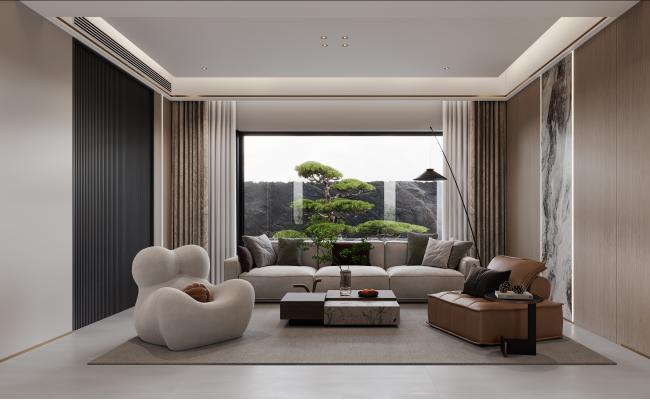 空間以可可蛋奶色系與淺灰為基底,雕花穹頂垂落水晶光瀑。復(fù)式層階以弧形曲線延展,鎏金勾邊如凝固的旋律。巖板樓梯與琺瑯玻璃裝飾對話歲月,古董鏡廊折射流動光影。摒棄浮華堆砌,于凡爾賽式骨架中留呼吸之白,終將古典魂靈凝練為當(dāng)代謐境,成就一處可棲心的精神殿宇。