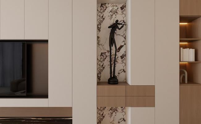 本案是高炮兵部隊軍區(qū)樓,喜好新中式沉穩(wěn)格調(diào),儲物需求量大,兩個男孩房色彩明亮,其他色調(diào)以明快色條現(xiàn)代巖板與傳統(tǒng)中式家具搭配碰撞出一種與眾不同的新中式