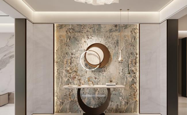 設計理念 輕奢風格的核心在于“簡約中見精致”,摒棄傳統復式的繁復裝飾,強調以現代手法融合古典元素。設計注重開放性與私密性的平衡,通過旋轉樓梯連接上下層,既增強空間流動性,又保留獨立功能區的靜謐感。材質選擇上,天然石材、金屬與絲絨的碰撞,既保留法式古典的厚重感,又賦予現代輕奢的精致氣息。 核心元素 材質?:天然石材(大理石)、金屬(黃銅、不銹鋼)、絲絨和玻璃是輕奢風格的標志性材質。這些材質通過紋理碰撞(大理石與金屬的搭配)提升空間層次感,同時賦予現代氣息。 色彩?:以中性色調(黑白灰、米色)為基底,局部點綴墨綠、藏藍等跳色,例如中空的背景掛畫采用撞色拼接,既清新又顯高級。 造型?:家具和燈具造型簡潔,注重功能性與美觀性結合。無拉手柜體、懸浮式結構,以及環抱形沙發設計,通過柔化空間邊界增添大宅藝術感。 空間布局要點 功能分區?:采用中空兩層式體塊設計,將上下層增加交流互動,通過中空釋放感知空間;樓梯玻璃護攔拉大視角,弧形增強動線流暢性。 自然采光?:復式需最大化利用寬景窗,客廳采用落地窗設計,搭配兩層一寫到底簾強調大宅氣派;同時通過中空的背景,頂天立地設計手法,增強空間立體感。 適用場景 輕奢風格復式大宅適合追求生活品質但不喜歡浮夸裝飾的都市人群,尤其適合多代同堂家庭。其設計既滿足現代都市對舒適度的需求,又能通過細節傳遞獨特品味,半開放式廚房與餐廳的融合,既促進家庭互動,又提升烹飪效率。