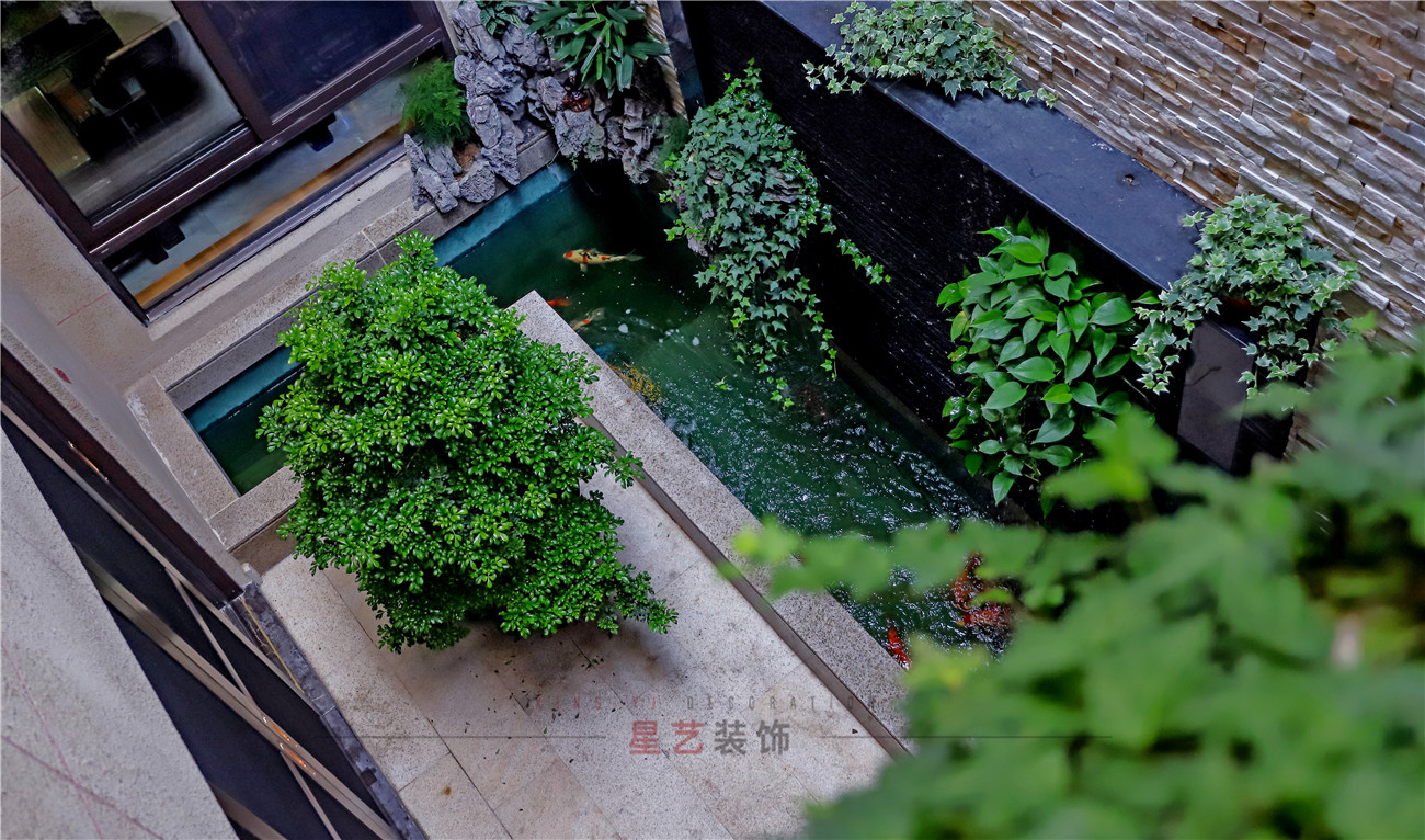 大片的綠植映入眼簾,各種小魚(yú)在清澈的水中雀躍遨游的,在假山的襯托下,這個(gè)小角落格外的清新優(yōu)美,閑時(shí)賞魚(yú)賞美景,飯后在小花園跟朋友一起談天說(shuō)地,何嘗不是另一種修生養(yǎng)性。