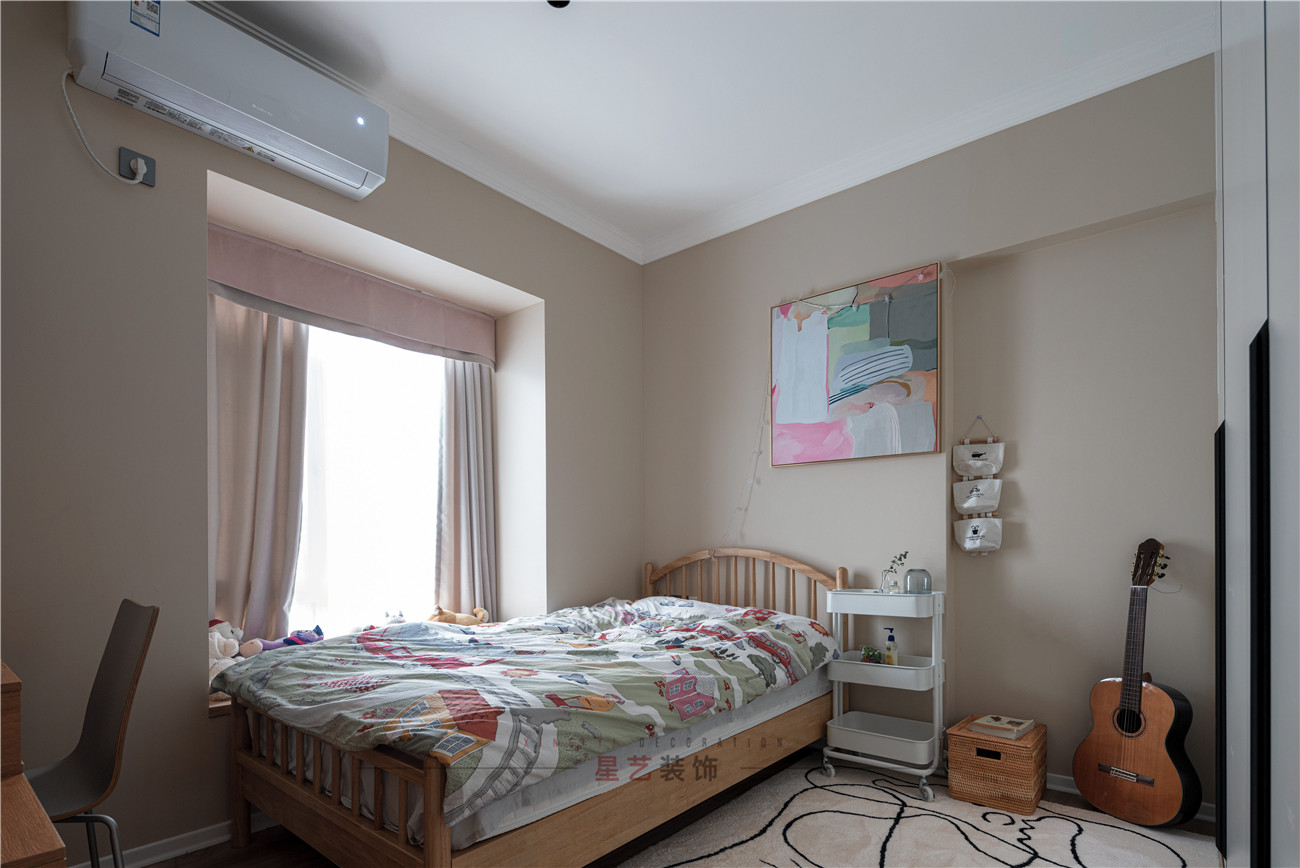 兒童房用撞色元素搭配出豐富童心世界,收納移動架代替床頭柜,孩子的玩具和生活用品都可以合理分配放置。