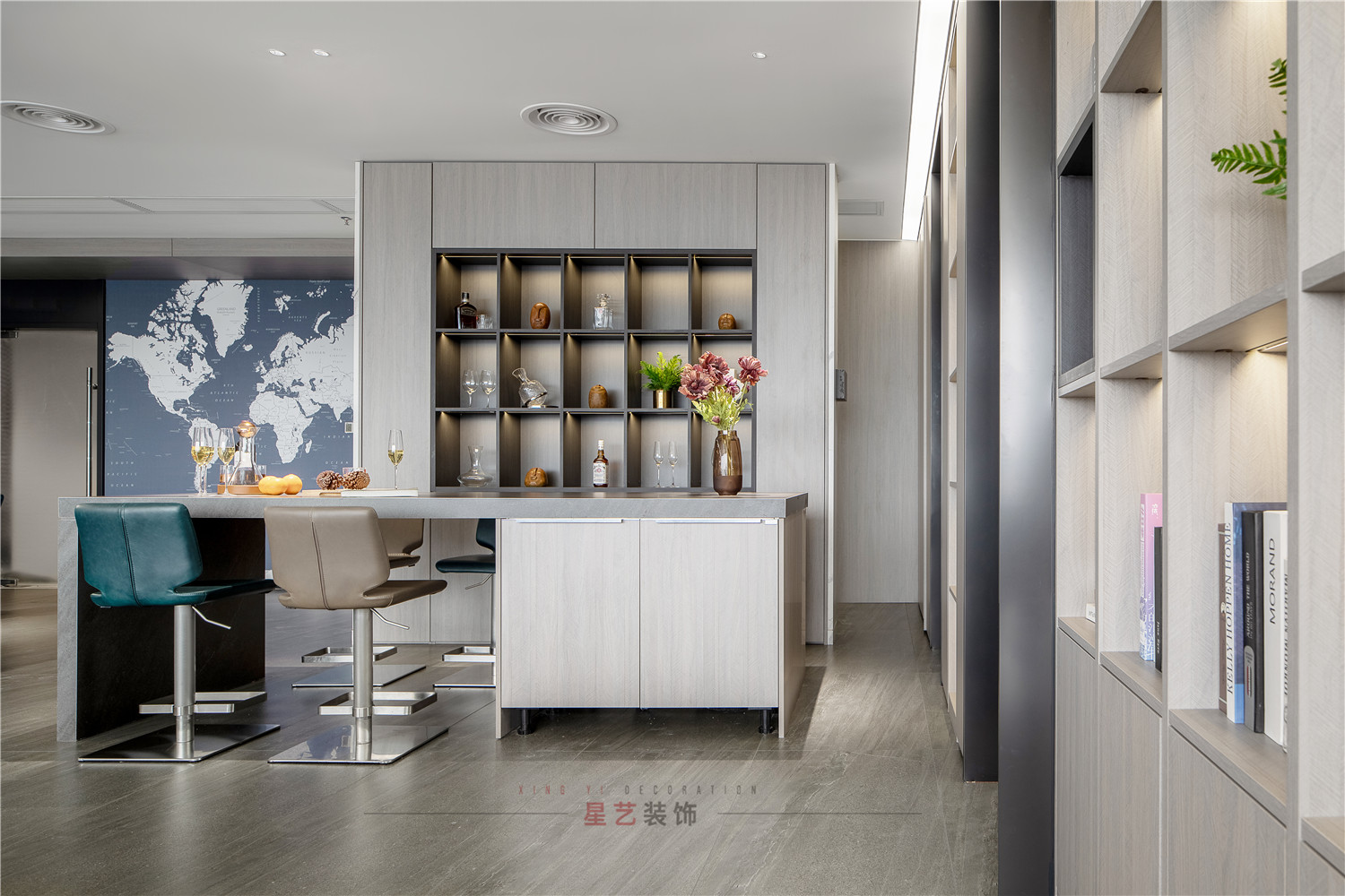 水吧部分直接設(shè)計(jì)了酒水柜,并且暖色的燈光直接把氛圍感拉滿,在休息時(shí)間也能感受溫馨浪漫的環(huán)境。