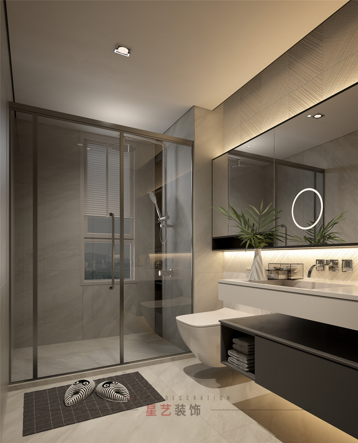 極簡(jiǎn)線條的浴室柜更加流暢自然,筒燈與燈帶設(shè)計(jì)相結(jié)合,燈光效果別具一格。壁掛馬桶,顏值在線而且無(wú)衛(wèi)生死角,磨砂感瓷磚,壁掛浴室柜,每一件物品都是精挑細(xì)選,搭配起來(lái)氣質(zhì)和諧。
