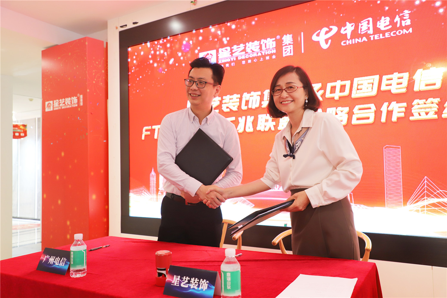 在現(xiàn)場(chǎng)嘉賓的共同見證下,星藝裝飾廣州分公司副總經(jīng)理劉亦萍和中國電信廣州分公司創(chuàng)新中心總經(jīng)理李應(yīng)春代表雙方在戰(zhàn)略協(xié)議書上簽字,開啟了戰(zhàn)略合作的新篇章!