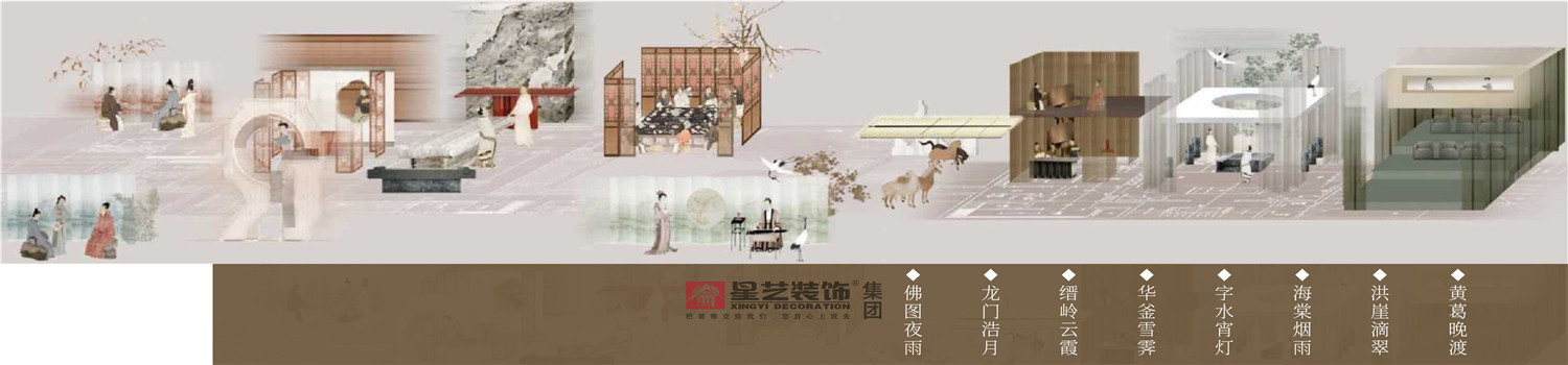 本案以巴蜀十二景為主題思想移步一景,空靈之美耐人尋味,在有象于無象之間,最稱奇妙。設計上講究的是氣韻,“氣韻,生動是也”是以現代的表現手法呈現中式的精神內核。