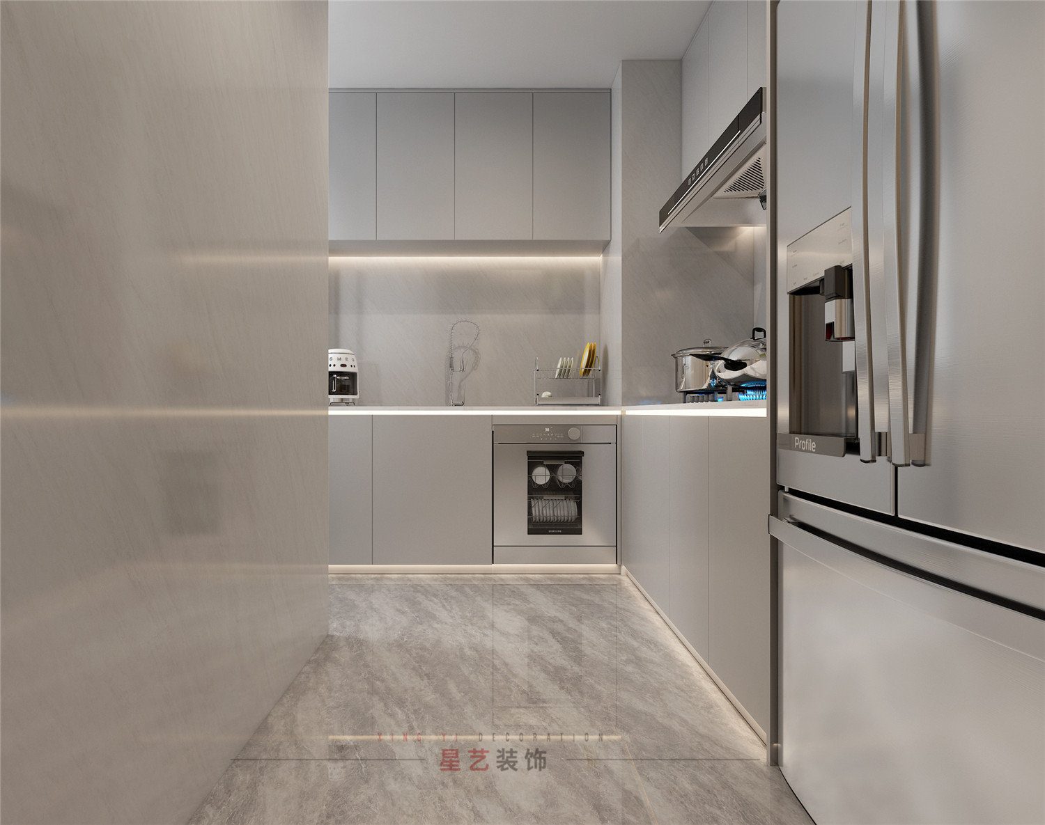 簡單大氣廚房以高級低調的純色為主