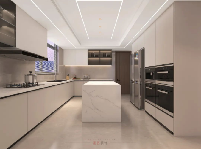 廚房中以線帶面,層次分明,呈現簡約優質、低調有品的家居生活。