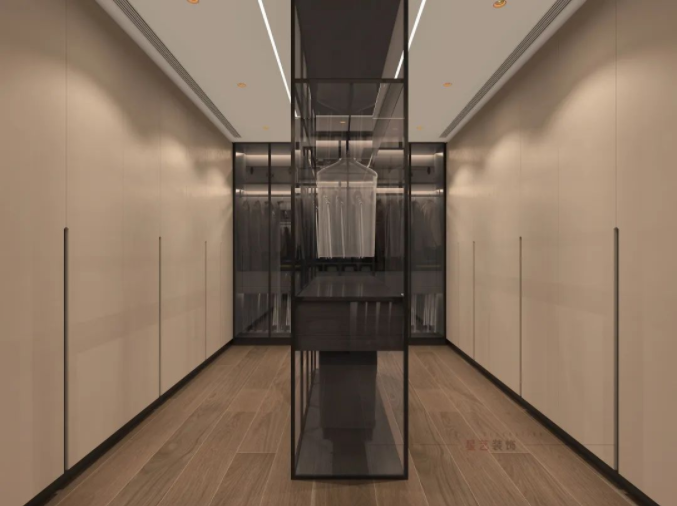 Double-sided layout of the cloakroom capacity, the visual also appears in order; with a door to the top and glass door design, more luxurious temperament.