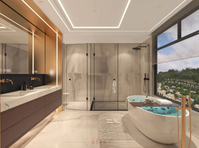 半開放的浴室悠然愜意,如沐浴在云層之間,給人難以忘卻的空間體驗。