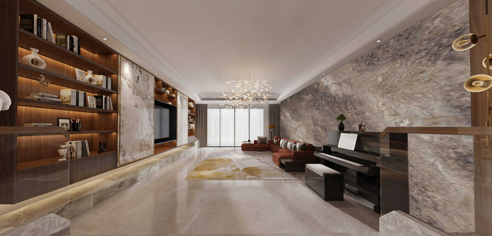 400㎡現(xiàn)代臺式大平層 | 胡桃木色的心物相契