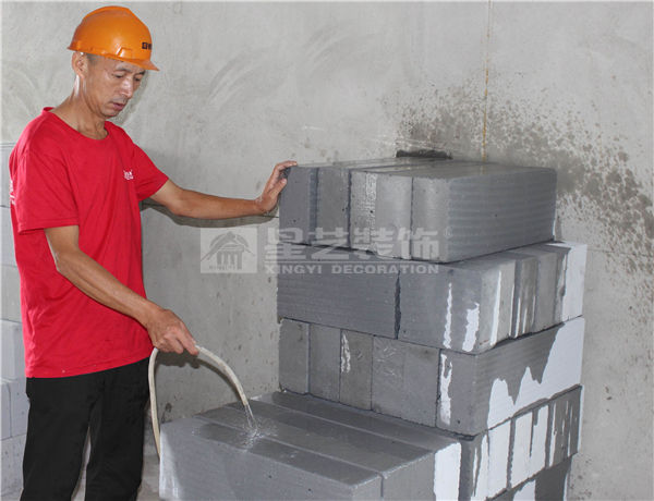 (1)放樣:按照施工圖放大樣,確定砌墻位置。