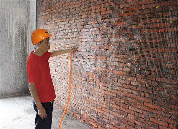 (1)掛網:新砌墻掛鋼筋網,新舊墻、梁柱交接處掛網不少于200mm搭接。