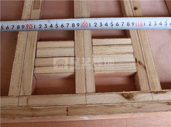 15厘板條涂好白乳膠粘貼在飾面板上形成框架,再在上面粘貼一層飾面板。